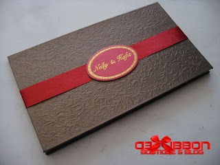First of all, warna merah dalaman kad tak sesuai ngan warna merah ribbon yang me dah bagi sample kat kedai tue (ribbon kat muka kad tue, tengok gambar bawah).